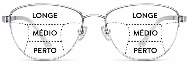 As lentes progressivas possuem três zonas principais: